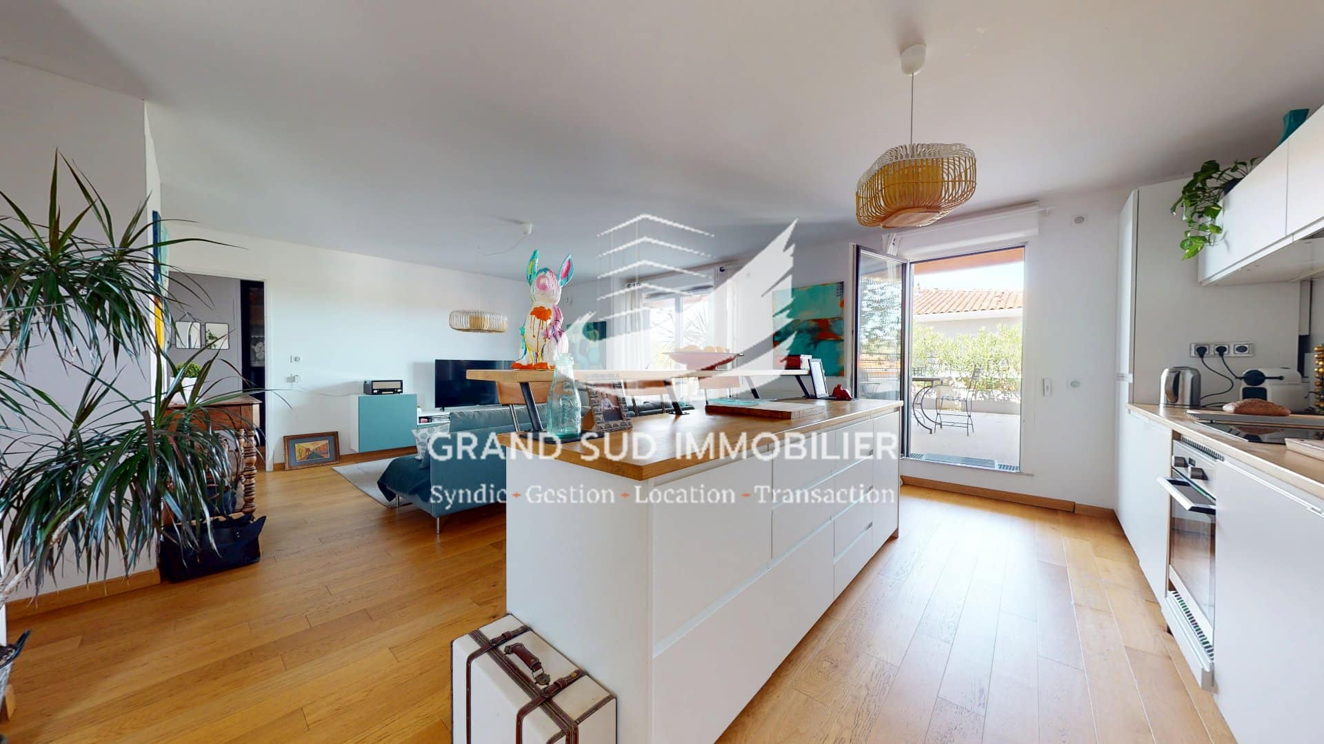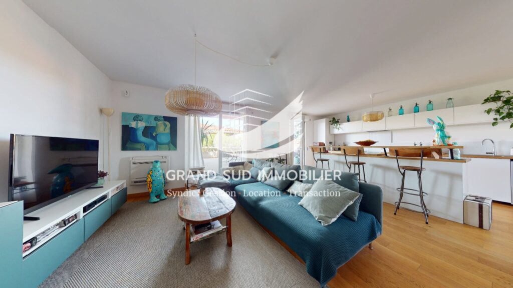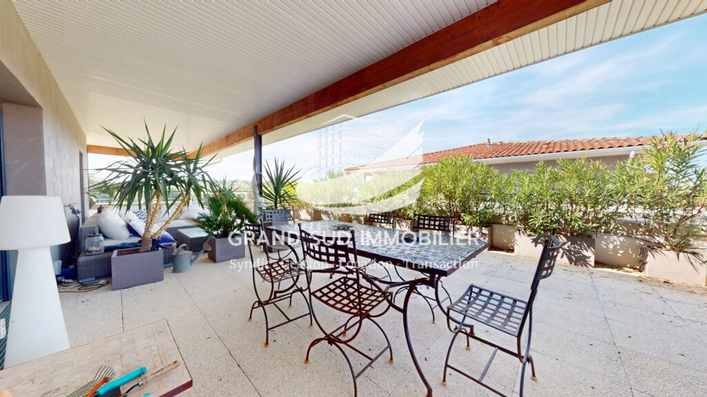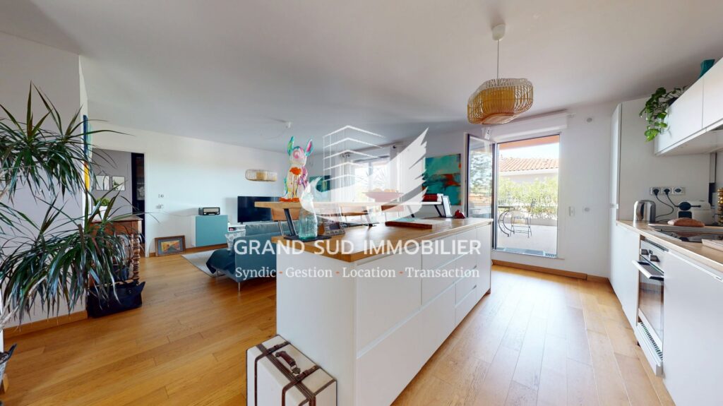 Votre agence GRAND SUD IMMOBILIER a le plaisir de vous proposer à la vente, sur la commune de Balma, cet appartement T4/T5 de plus de 100 m² avec une grande terrasse et 2 balcons, seul bien au troisième et dernier étage d'une résidence de 2017. Il comprend une très grande pièce principale avec séjour, salle à manger et cuisine ouverte et équipée, le tout ouvert sur une terrasse de plus de 80 m² exposée ouest et un balcon exposé nord-est, une chambre avec sa salle d'eau privative. et dans l'espace nuit, deux grandes chambres donnant chacune sur un balcon une salle d'eau avec wc et des wc indépendants. 2 places des parking en sous-sol boxables accompagnent ce bien. Vous apprécierez: l'environnement calme et arboré, la qualité des prestations ( parquet bois massif, volets roulants électriques) et la luminosité. N'hésitez pas à nous contacter pour une visite au 06.34.43.79.74